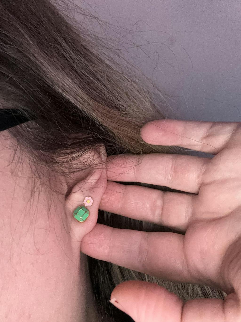 It’s natural for ear piercings to react occasionally. A new piercing typically takes at least a year to fully heal, sometimes longer. Irritation can occur due to illness, frequent changes, heavy earrings, or thicker posts. During illness, we suggest changing pillowcases often. A good tip is to pull the backing slightly away from the ear to allow airflow. A small hoop earring can help during sensitive periods. Wash the earlobe with mild soap and warm water twice daily if irritation occurs, and dry with clean paper or a towel.